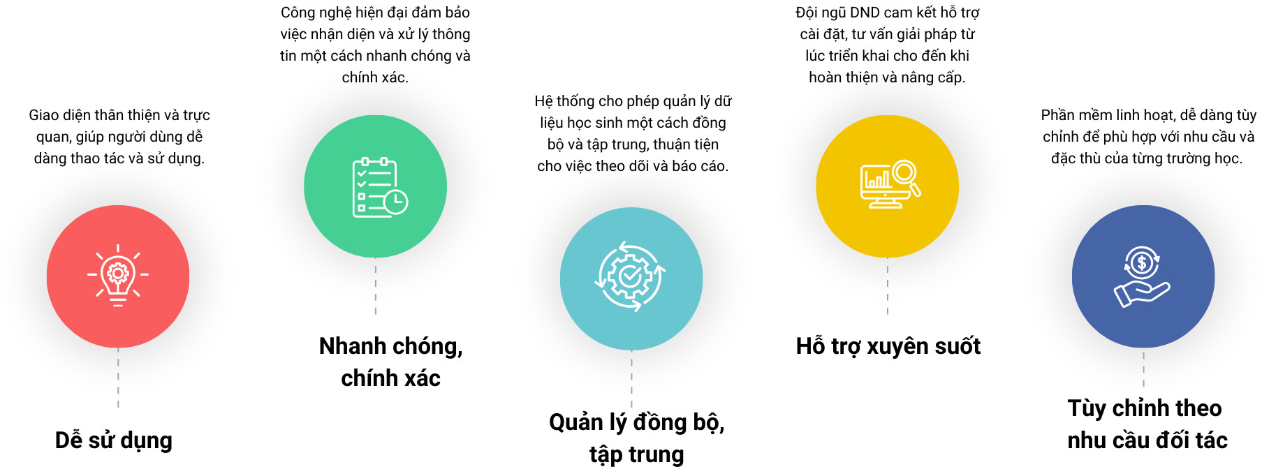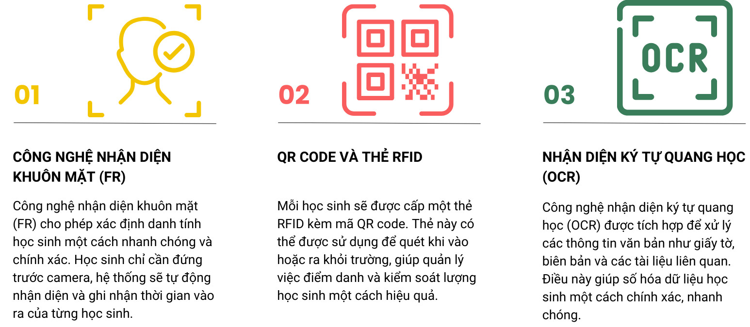 Trong thời đại công nghệ 4.0, việc ứng dụng các giải pháp công nghệ cao vào quản lý học sinh đang trở thành xu hướng tất yếu. Thầy cô sẽ không còn mất thời gian với phương pháp điểm danh truyền thống nữa. Với mục tiêu nâng cao hiệu quả quản lý và đảm bảo an toàn cho học sinh, DND Technology tự hào giới thiệu giải pháp quản lý học sinh vào ra tích hợp nhiều công nghệ hiện đại: Công nghệ nhận diện khuôn mặt (FR), mã QR code và nhận diện ký tự quang học (OCR). |